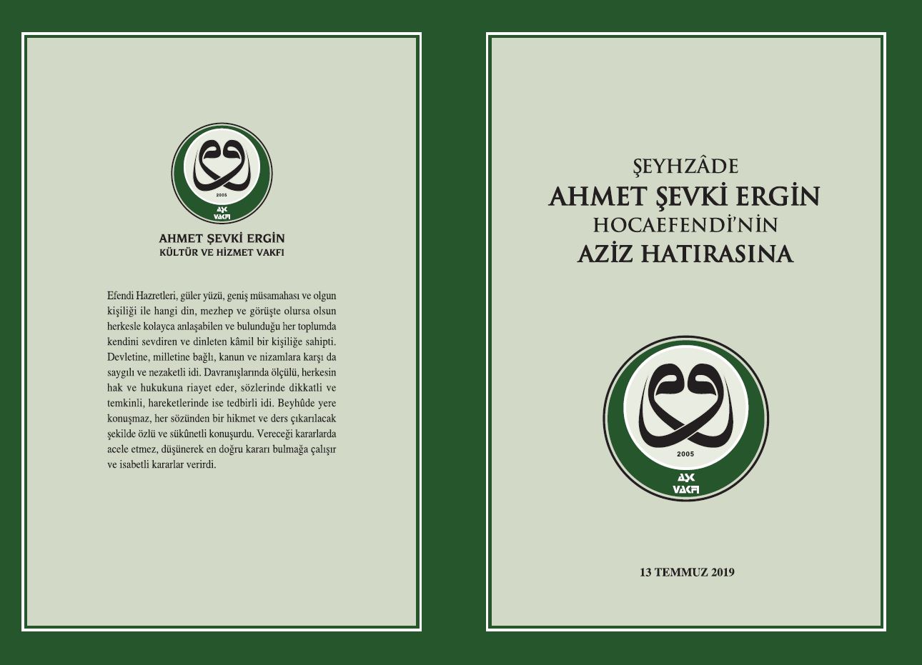 ŞEYHZADE AHMET ŞEVKİ ERGİN HOCAEFENDİ'NİN AZİZ HATIRASINA